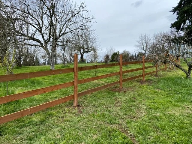 3-Rail Wood Fencing: Classic and sturdy, perfect for defining boundaries on farms, ranches, or residential properties.